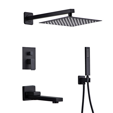 Black Wall Mounted Rainfall Concealed Shower Mixer Faucet Set Bathroom Rain Shower System Bath & Shower Faucets